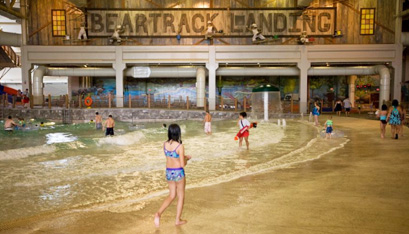 The major crankiness crusher for me, however, is Slap Tail Pond. You literally feel like you’re sitting by the ocean. They create a comfortable breeze in the air while waves crash at your feet. The best part? I can enjoy all of the fun things about being at the beach without having to slather tons of sunscreen on myself and the kids (we’re all vampirishly pale) or fretting about sand going in their mouths. I’m LOVING how incredibly easy it is to entertain the kids without having to worry–which of course I’m still doing anyway–but they’re helping take the edge off by selling frozen “adult” smoothies at the snack bar. Hello tequila! Just what mama needed. 😉