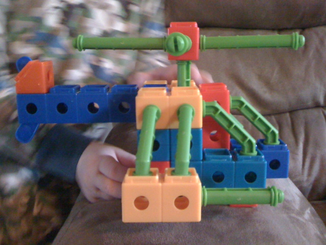 I’m a little ashamed to admit this, but I’m going to put it out there: I loathe putting together Lego-type toys with my son. It might have something to do with my inability to sit still for more than 3 seconds–or maybe I’m just not mechanically inclined. He’s only 4 yet he can follow instructions better than I can! In any case, he was giving me the puppy dog eyes this morning and asked me to help him build a helicopter with his Trio building set. I sort of cringed on the inside (which made me feel guilty and unmom-like), but I decided that it was time to suck it up, sit down, and figure out how to make this thing.